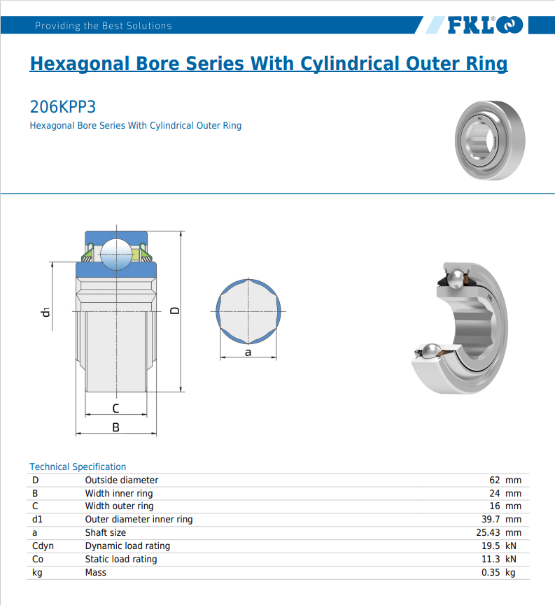 Produktinformationen "206-KPP-3 / 206-KRR-6 / Rillenkugellager mit Innensechskant + 3-fach Dicht"
