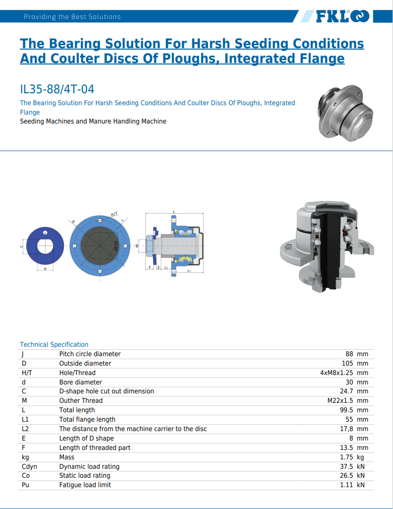 M22 x 105/88 x 99,5 mm - FKL Gewinde: M 24 x 1,5 mm Lochabstand: J = 88 mm Lochgröße: T = 4 x M8 x 1,25 mm Gesamt Ø: D = 105 mm