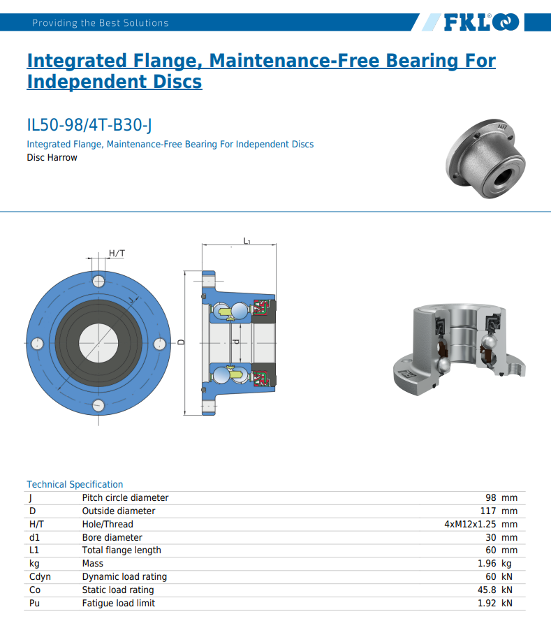 30 x 117/98 x 60 mm - FKL Lochkreis: J = 98 mm Lochgröße: H/T = 4 x M12 x 1,25 Mutter: 6331-M22x1,5 (33171) Gesamt Ø: D = 117 mm