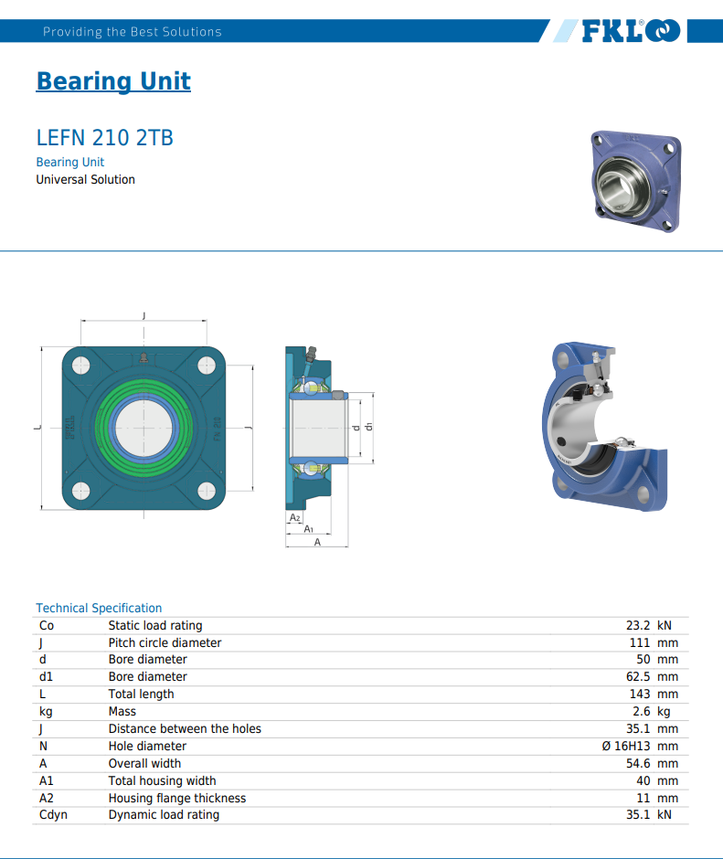 Produktinformationen "LEFN 210 2TB / 4-Loch Flanschlagereinheit Sphäroguss + 3-fach D."