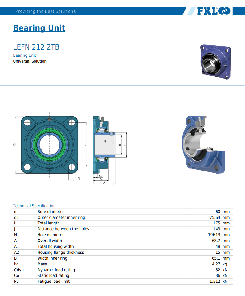 Produktinformationen "LEFN 212 2TB / 4-Loch Flanschlagereinheit Sphäroguss + 3-fach D."