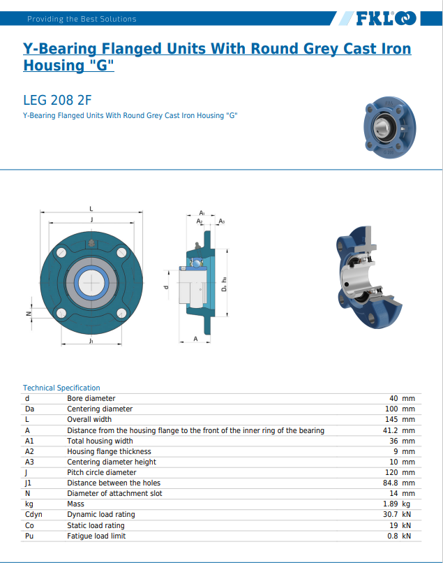 Produktinformationen "LEG 208 2F / 4-Loch Flanschlagereinh. rund m. ZA"