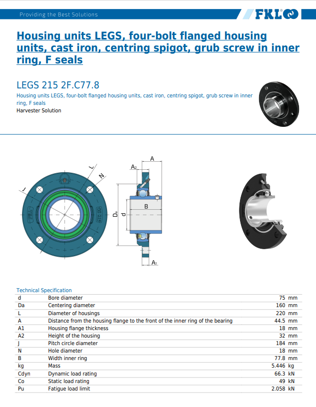 Produktinformationen "LEGS 215 2F.C77.8 / 4-Loch Flanschlagereinh. rund m. ZA"