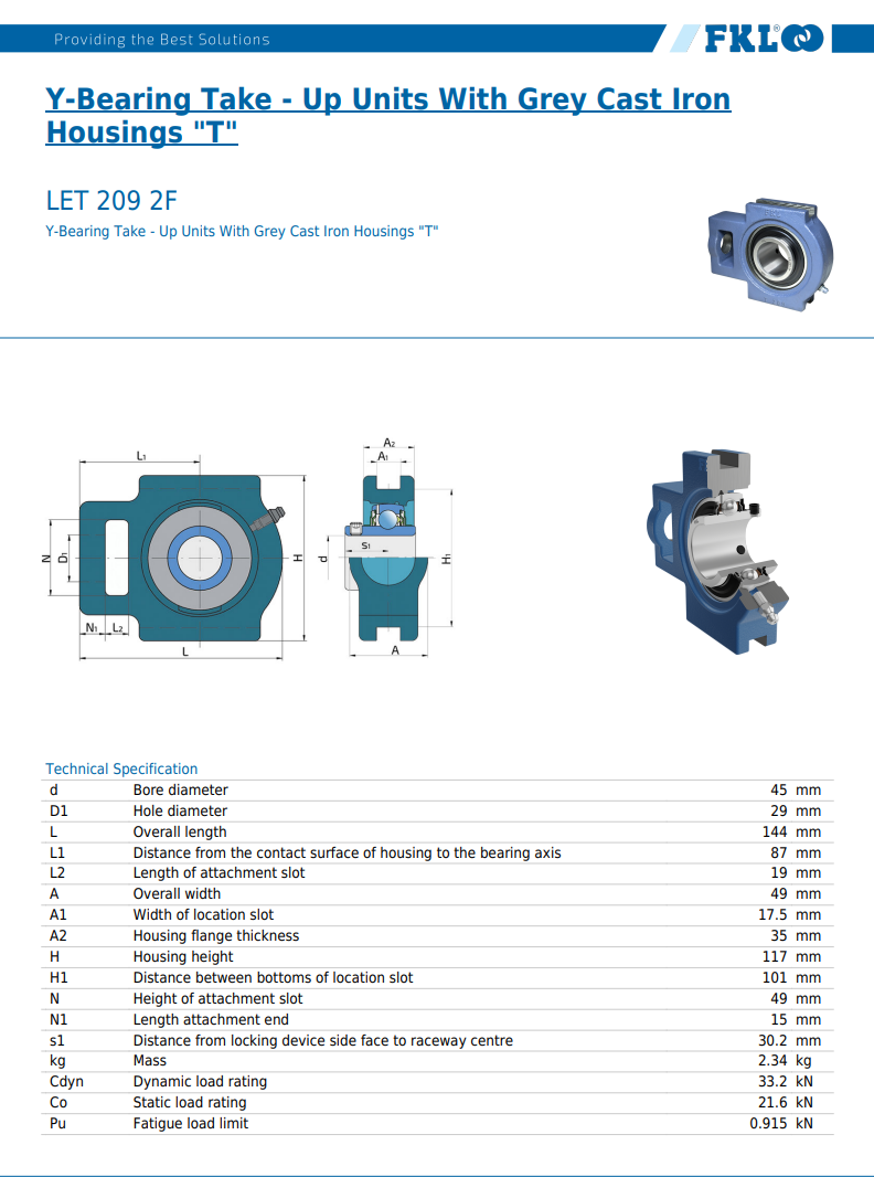 45 x 117 x 144 mm - FKL Lochgröße: D1 = 29 mm Wellenmitte: L1 = 87 mm Einbaumaß: H1 = 101 mm Nutbreite: A1 = 17,5 mm