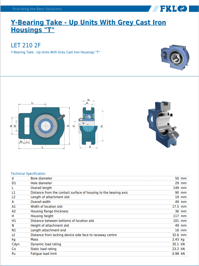 50 x 117 x 149 mm - FKL Lochgröße: D1 = 29 mm Wellenmitte: L1 = 90 mm Einbaumaß: H1 = 101 mm Nutbreite: A1 = 17,5 mm