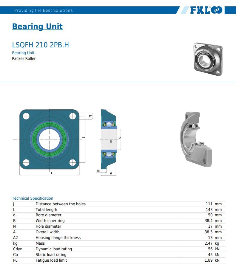 Produktinformationen "LSQFH 210 2PB.H / Wartungsfreie Flanschlagereinheit mit 6-fach Dtg."