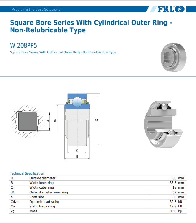 Produktinformationen "W 208 PP-5 / Lagereinsatz mit Innenvierkant und 3-fach Dichtung"