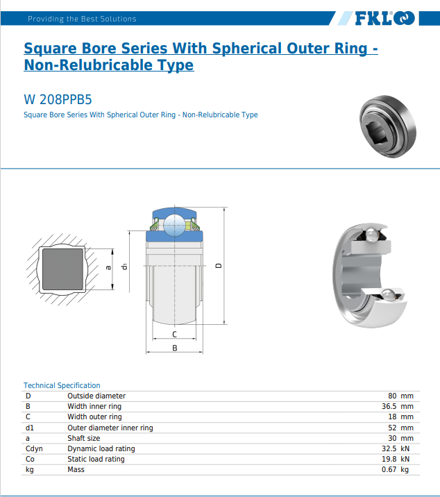 Produktinformationen "W 208 PPB-5 / Lager mit Vierkant und 3-fach Dichtung"