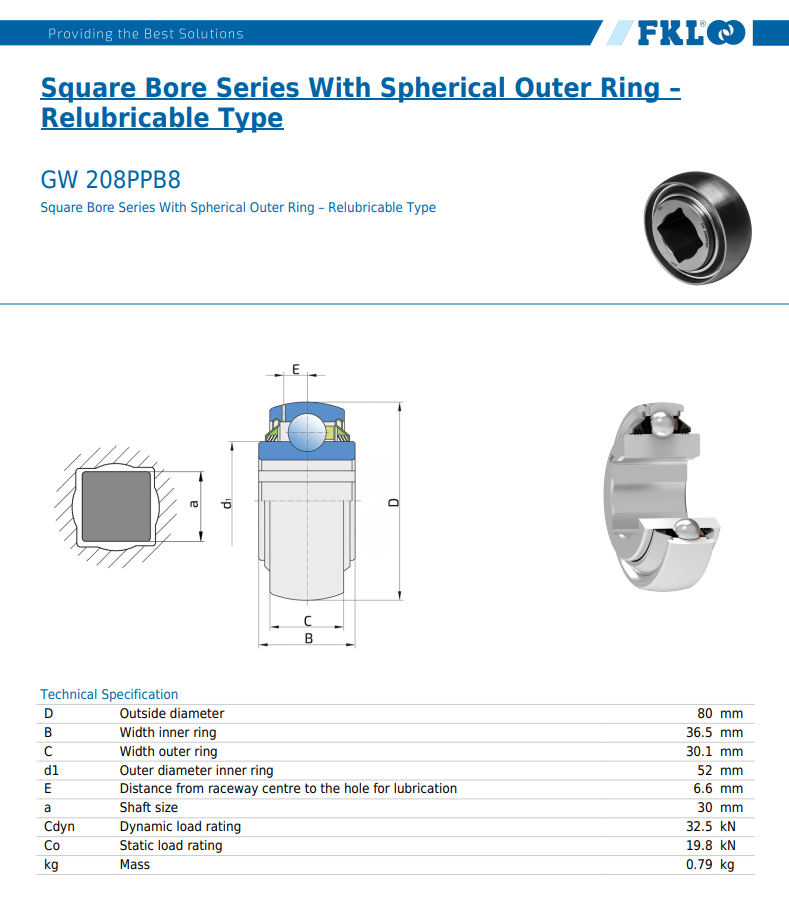 Produktinformationen "W 208 PPB-8 (4-KT) / Lager mit Innenvierkant und 3-fach Dichtung"