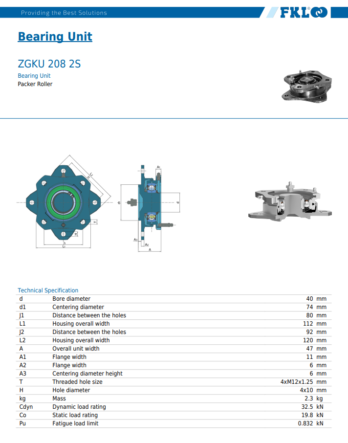 Produktinformationen "ZGKU 208 2S / 8-Loch Flanschlagereinheit (Garnitur)"